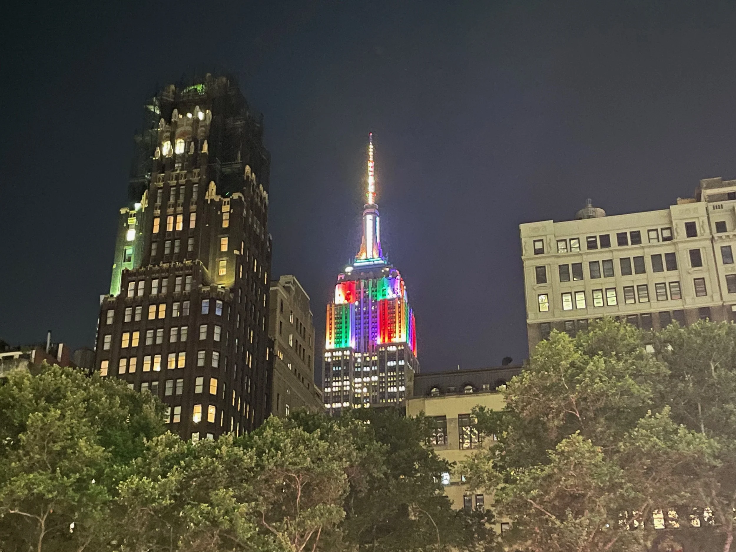 The vibrant Empire State Building shone over Bryant Park while I was watching a screening of “Star Trek VIII: First Contact.”